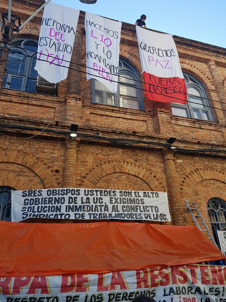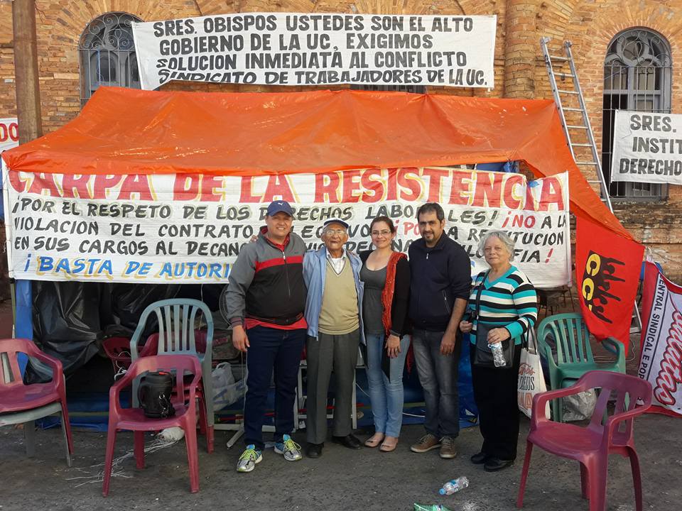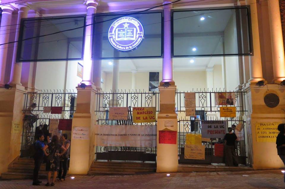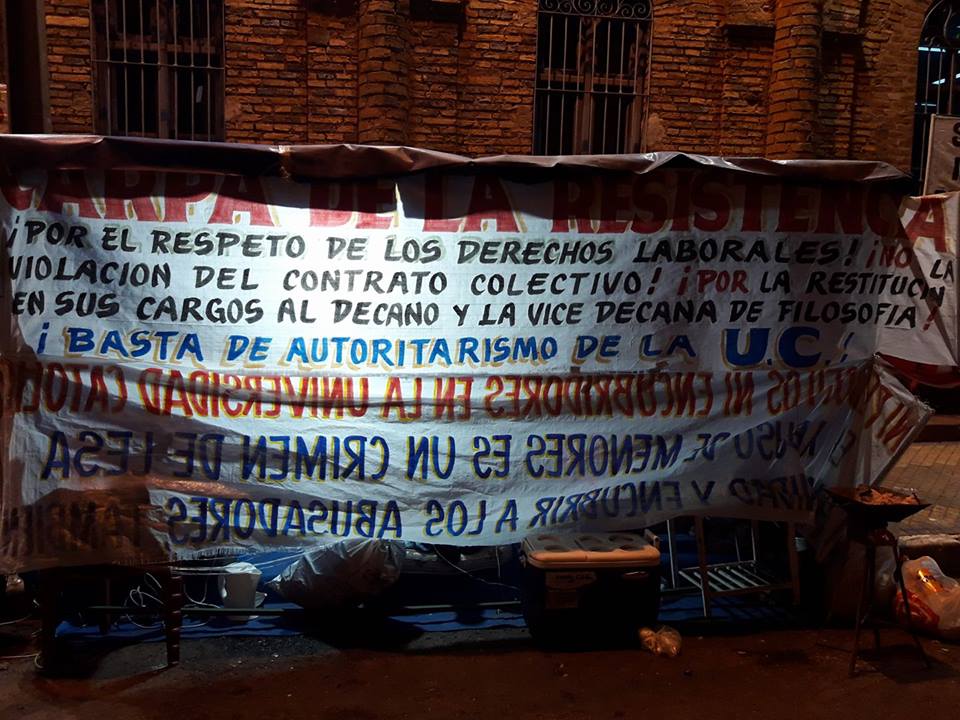 Unidad Interestamental en la UC. Paro académico, Toma del Rectorado por parte de las y los estudiantes, Carpa de Resistencia de los y las funcionarias, son las medidas de fuerza asumidas por distintos estamentos de la UC contra las arbitrariedades del Rector Narciso Velázquez, quien irrespeta derechos laborales y destituyó ilegítimamente al decano de la Facultad de Filosofía, José Antonio Galeano.